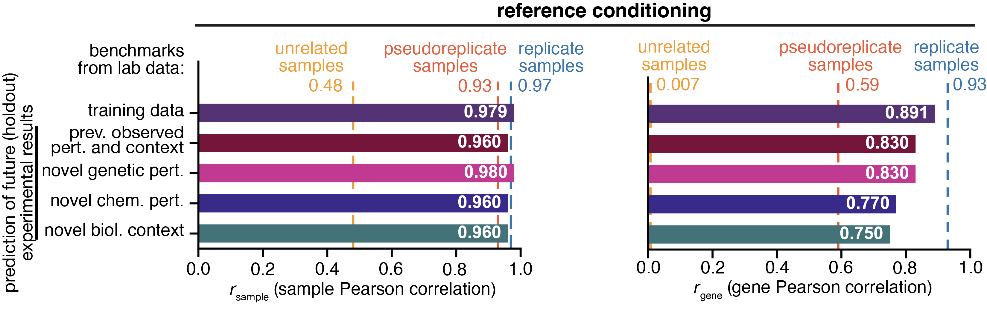 If the AI-Generated data is able to reach pseudoreplicate level reproducibility, it means that it is performing as well as biology itself does across labs. Replicate-level performance — especially when we condition on reference samples — means that the AI-generated data is able to achieve the best possible fidelity that any experiment can.